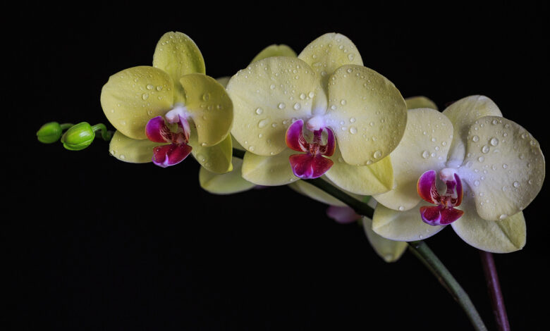 - Избегайте попадания воды на цветы и почки орхидеи.